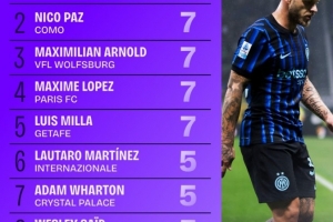 6、劳塔罗(国米):5次