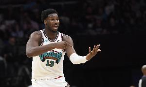 本场比赛,灰熊内线小贾伦-杰克逊表现一般,进攻端效率不高,在26分钟的时间里,投篮13中4,三分球5中5,罚球9中7,拿到16分3篮板2助攻的数据,有4次失误和5次犯规。